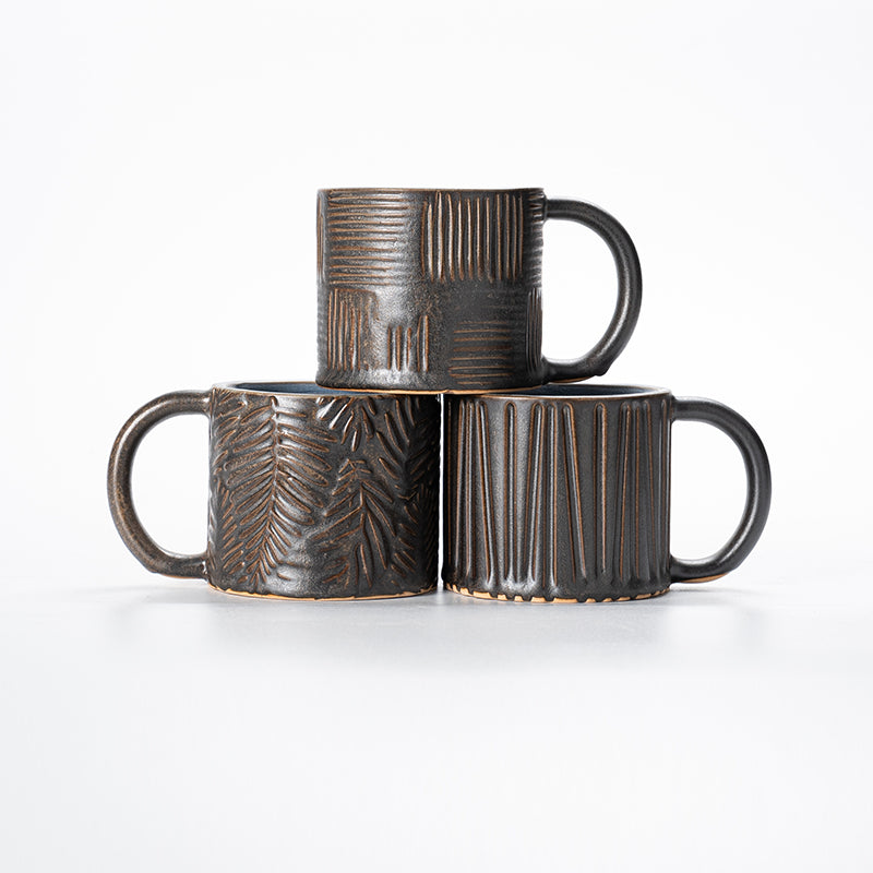 Black glazed texture ceramic mug set